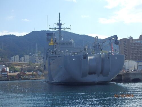 敷設艦「むろと」の後部は 海底ケーブル敷設の支障に ならないように丸められています。 面白いですね。 YO25・37は大型の油船で、重油・軽油を590キロリットル 搭載し、艦艇に対して 船舶燃料の補給を行います。 練習艦「やまゆき」と護衛艦「さざなみ」…