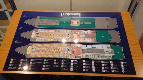 フェリーおおさか共用施設としては、4階にエントランスホール案内所とレストラン 5階に展望大浴場が設置されています。 残念ながら本船内には、売店はありません。 5時過ぎに起床。 朝風呂の後 下船準備をして、6時前に部屋を出ました。 案内所に個室の…