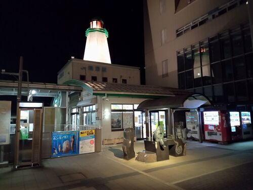 境港駅は、鳥取県境港市にあるJR西日本、境線の終着駅です。 愛称は鬼太郎駅。 駅舎は灯台の形をしており、隣接して「みなとさかい交流館」があります。 18時台の境港駅ゆきの汽車は出てしまったので、待ち時間の間 軽い夕食を摂る。 駅前のラーメン店で…