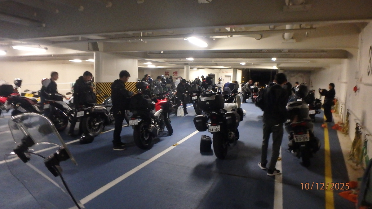 オートバイの数は50数台もあり、熱気で甲板は27℃もある。 やべ、汗が出てきた。